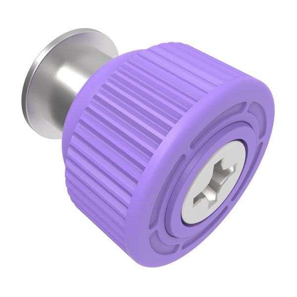 N/A Captive Screw, M3 X 0.5, Flare-in, Phillips Recess, Knurled Purple Knob |