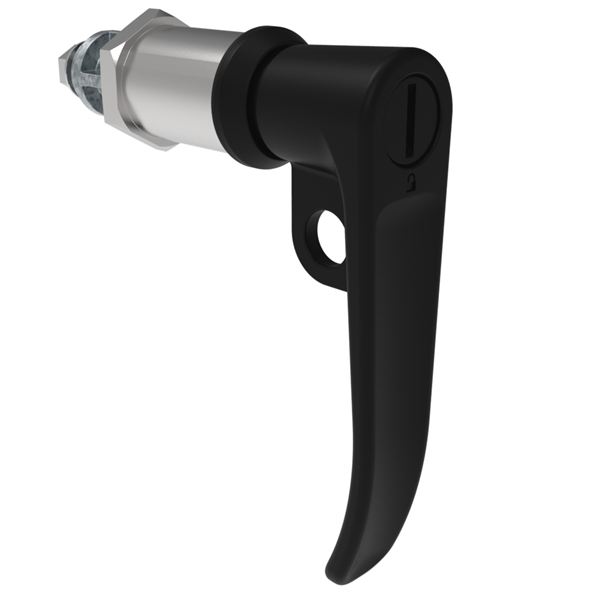N/A E5-7A-1005-UU5 Quarter-Turn Cam Latch, Slotted Tool Access, L-Handle, Pad Locking, Sealed, Zinc Alloy, Powder Coat, Black |