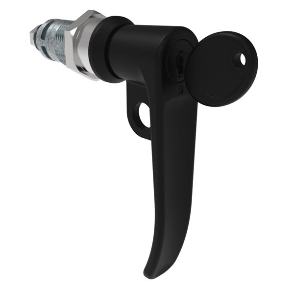 N/A E5-7A-715-UU3-13 Quarter-Turn Cam Latch, Key Locking (CH751), L-Handle, Pad Locking, Sealed, Zinc Alloy, Powder Coat, Black |