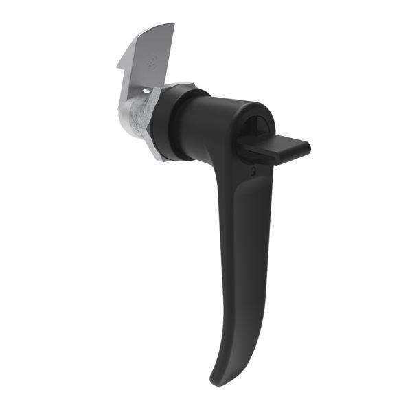 N/A Quarter-Turn Cam Latch, Key Locking (without lock core) L-handle, 23mm (.91 in) Grip, Not Sealed, Zinc Alloy, Powder Coat, Black |