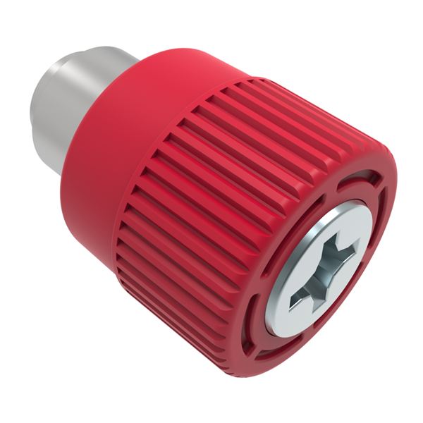 N/A Captive Screw, 4-40 Thread, Flare-in, Phillips Recess, Knurled Red Knob |