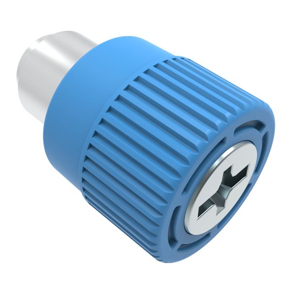 N/A 4C-PS-M5-1F1-K008 Captive Screw, M5 X 0.8, Flare-in, Phillips/Slot Combination, Knurled Blue Knob |