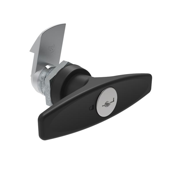 N/A E5-9-625-520-10 Quarter-Turn Cam Latch, Key Locking (Reversible Key) T-handle, 23mm (.91 in) Grip, Not Sealed, Zinc Alloy, Powder Coat, Black |